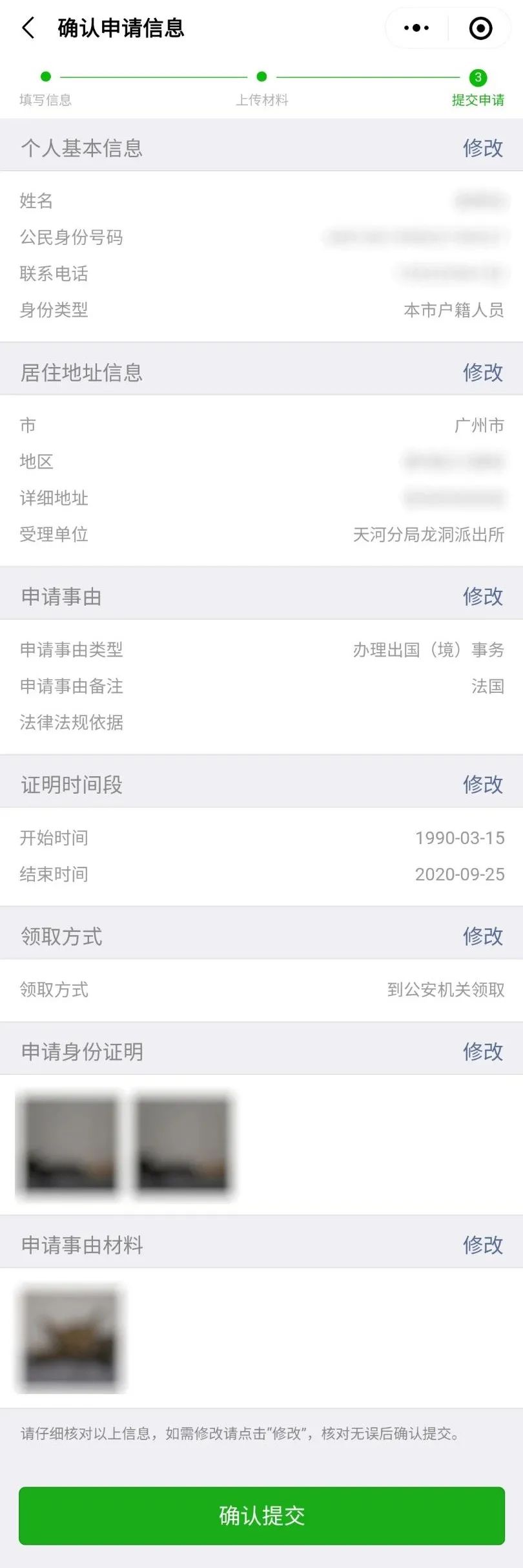 第五步:确认申请信息
