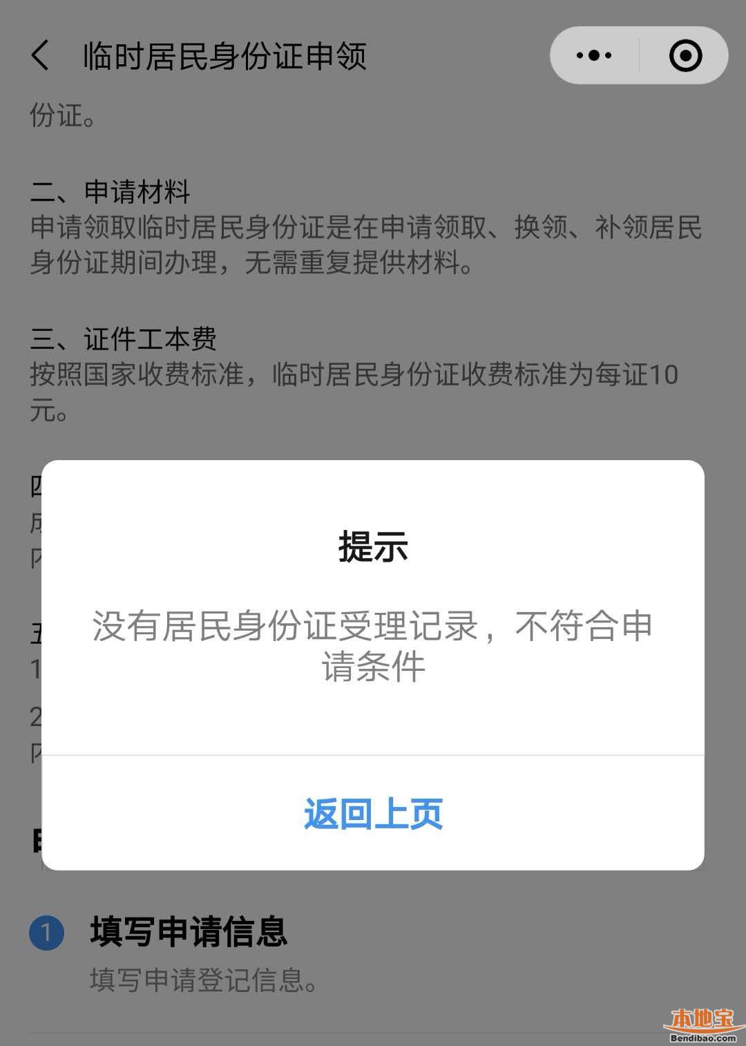 没有居民身份证受理记录的话是无法申领临时身份证的(如下图所示)。
