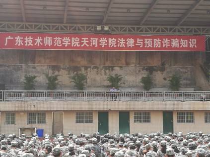 9月19日,为提升学生预防网络、电信诈骗的能力,增强安全防范意识,切实保障广大学生的利益,2018级新生法律与预防诈骗知识讲座在标准运动场举行,帽峰山派出所欧警官应邀主讲。