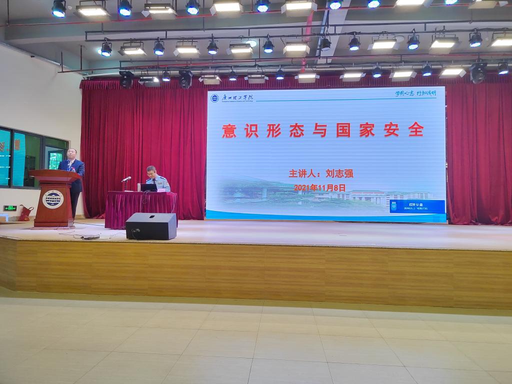 11月8日,学校举办意识形态与国家安全专题报告会,邀请到广州市白云区公安分局国保大队刘志强队长作辅导报告。本次讲座列入学校秋季学期“三全育人素质教育周”专题内容,学生管理部部长张志红、保卫处处长兼学生处副处长陈朝阳和师生代表共计700余人参加了报告会,讲座由党委副书记、副校长肖海主持。