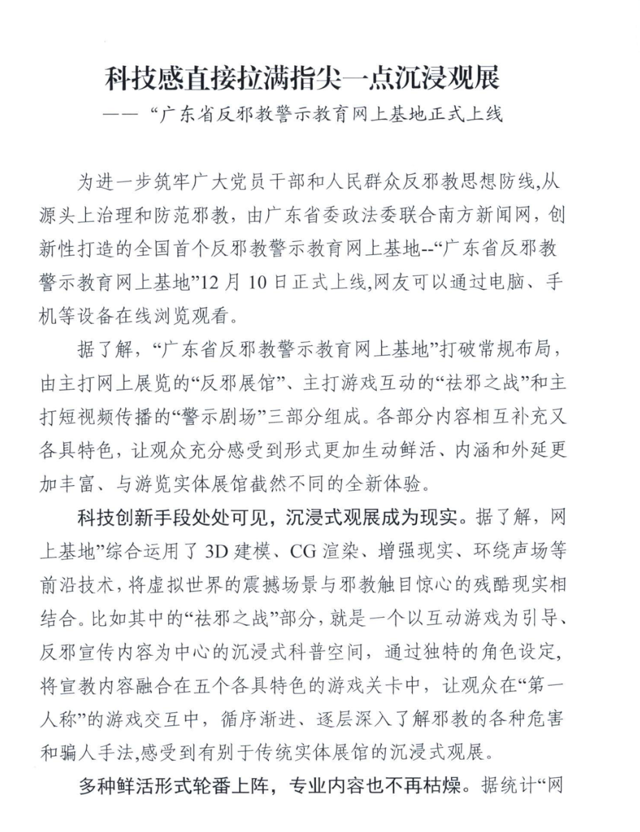 广东省反邪教警示教育网上基地正式上线