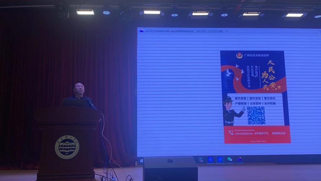 为增强大学生防范电信网络诈骗意识,筑牢校园网络安全防线,2月26日晚,威廉希尔中文网站邀请白云区太和派出所钱亮所长、社区民警蔡伟能警官和白云区反诈中心张小英警官到校开展反诈知识宣讲。