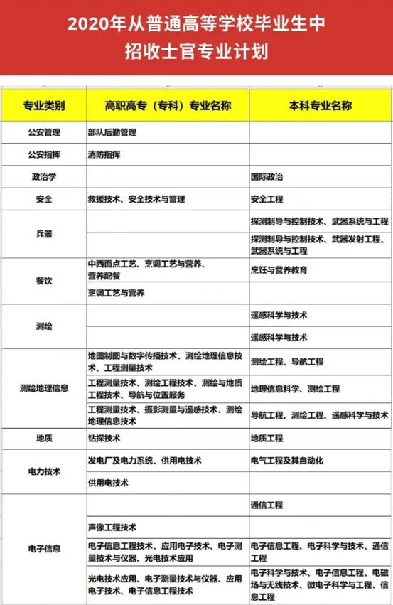 所学专业符合2020年直招士官专业范围。(专业目录见下表)