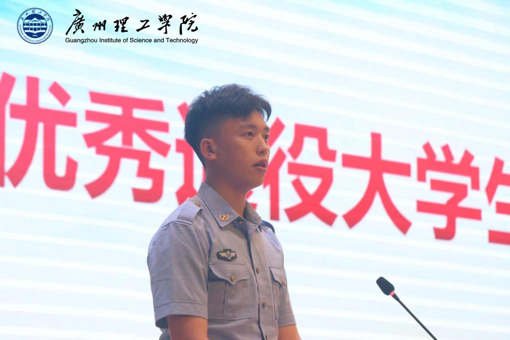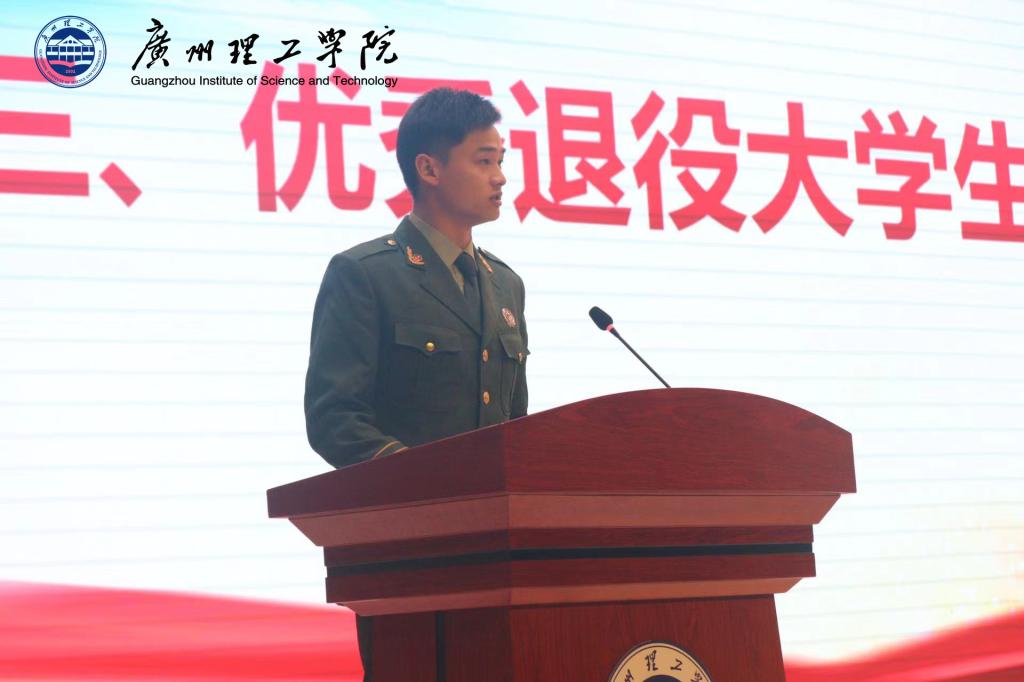 仪式在雄壮的国歌声中拉开帷幕。5名威廉希尔中文网站优秀退役大学生代表分享携笔从戎、参军报国的军营故事。他们分别从立志从军、角色转变、克服困难、为校争光等方面,讲述了奉献青春、点燃梦想、报效祖国、收获成长的个人经历。在场师生听到大学生士兵在军营中耐高温、战高寒、刻苦拼搏,收获荣誉的动人故事,无不深受感动、受鼓舞。