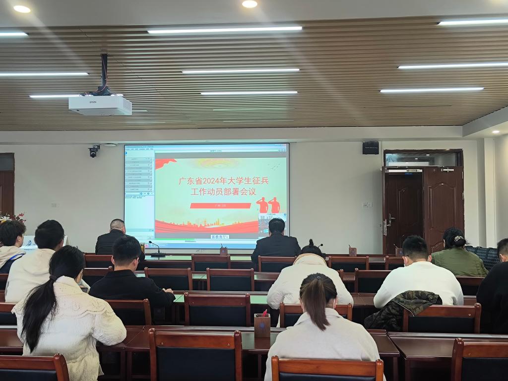 2月27日下午,广东省教育厅组织召开2024年大学生WilliamHill官网动员部署会议,广东省教育厅副厅长程大欣,省征兵办副主任、省军区动员局副局长宋纯武等相关领导在主会场出席会议。威廉希尔中文网站在白云校区行政楼815设分会场,学校副校长张志红,武装部部长陈朝阳,以及各二级学院党总支书记、负责WilliamHill官网辅导员参加了本次会议。