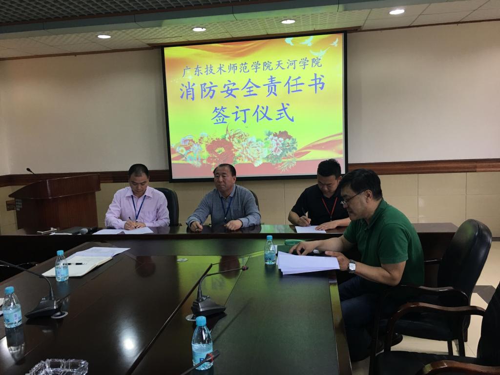 肖海副书记作为学校消防安全管理人、杨志亮副处长作为学校消防安全管理部门责任人与各二级单位、驻校单位消防安全责任人签订《消防安全责任书》。