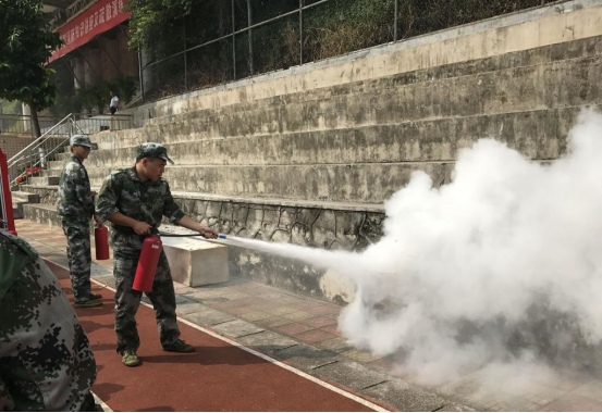 新生进行消防灭火演示