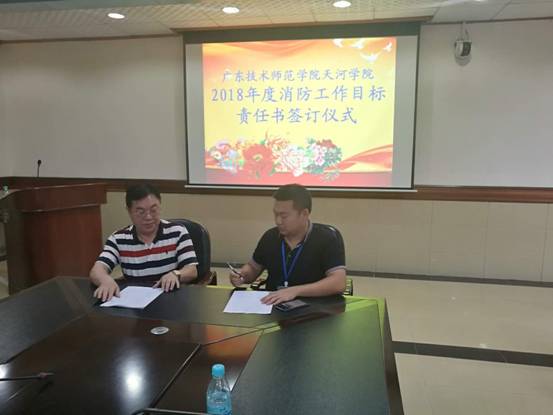 最后,胡思虎书记作为学校消防安全责任人与各二级单位、驻校单位消防安全责任人签订《2018年消防安全责任书》。