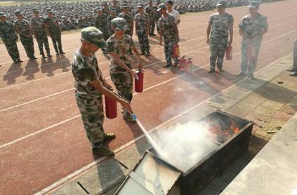 在实操演练环节,在教官的指导下,学生正确使用消防器材进行灭火实战演练和火场逃生体验,并顺利完成了疏散演练。
