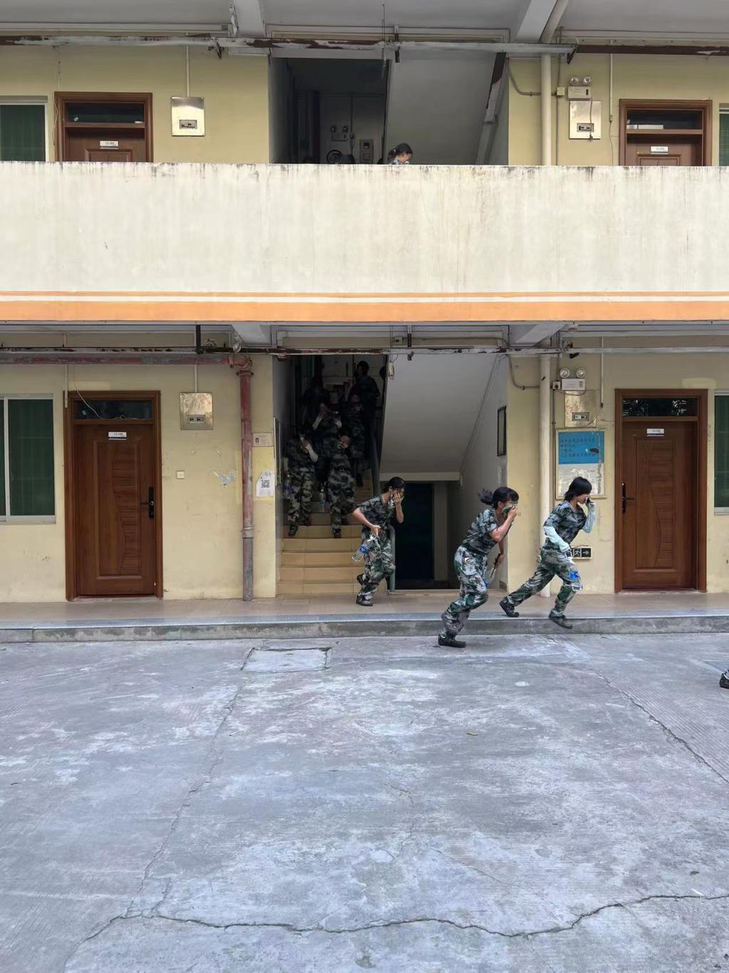 随后,在学校宿舍楼,1000余名新生举行了消防疏散逃生演练:演练假设16栋女生宿舍一楼发生火情,公寓管理员拨打消防报警电话及校内报警电话。保卫处接到报警后,立即启动学校火灾应急灭火疏散预案, 1000余名新生从“浓烟滚滚”的楼内快速撤离到安全地带。整个演练过程紧凑、有序,人员反应迅速,观看演练的新生们全神贯注,场内不断响起热烈的掌声,培训、演练达到预期效果。