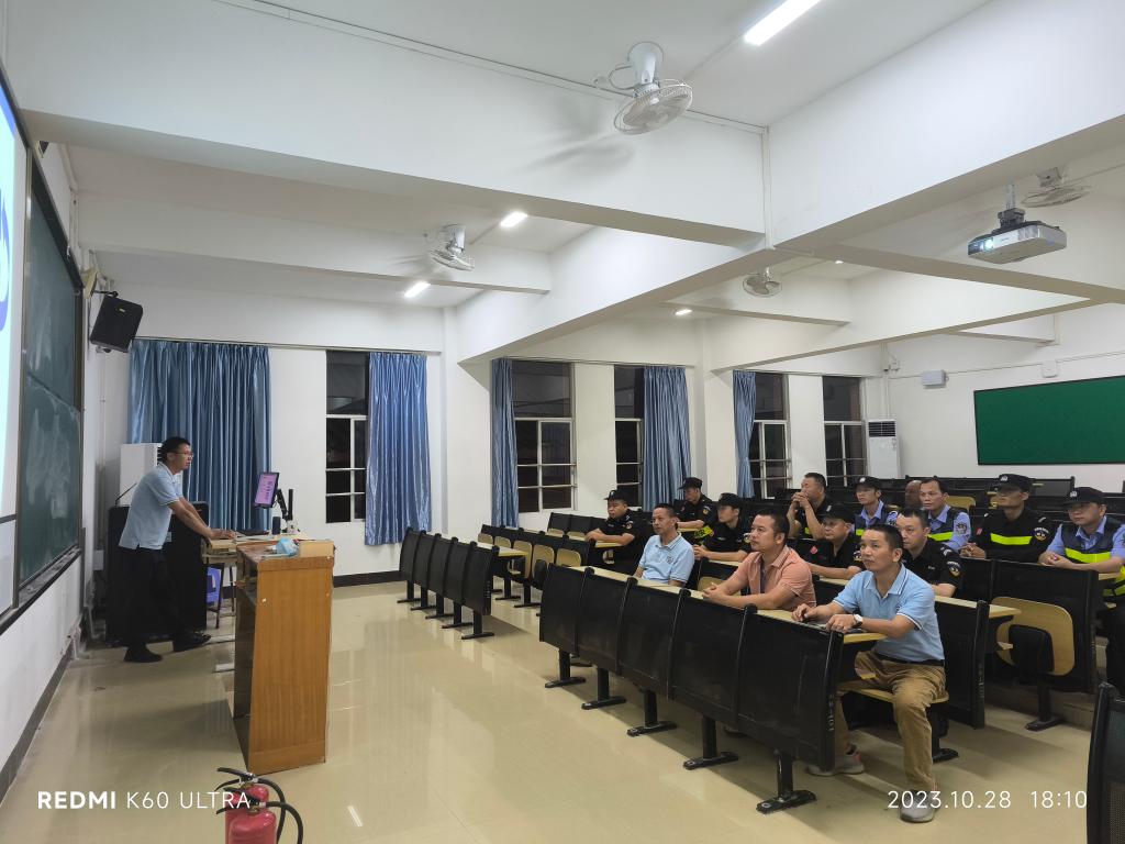 为提高安保队员应对突发事件的快速反应能力和处置水平,10月28日下午18点,保卫处联合消防办在综合楼118教室开展安保队员火警火灾处置培训。